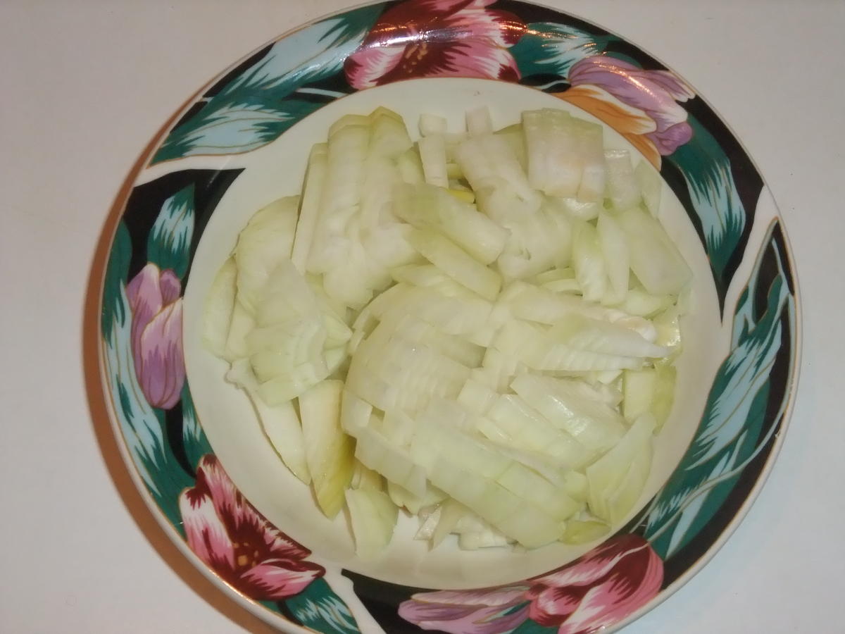 1. Die Hälfte der Champignons in Scheiben, die andere Hälfte (je nach Größe) in Viertel oder Achtel schneiden. Möhren der Länge nach halbieren und in Scheiben schneiden. Die Zwiebel und die Paprika grob würfeln. Erbsen aus der Dose abtropfen lassen.