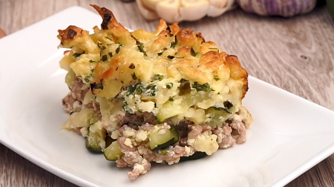 Zucchini-Hackauflauf mit Frischkäse und Spätzle