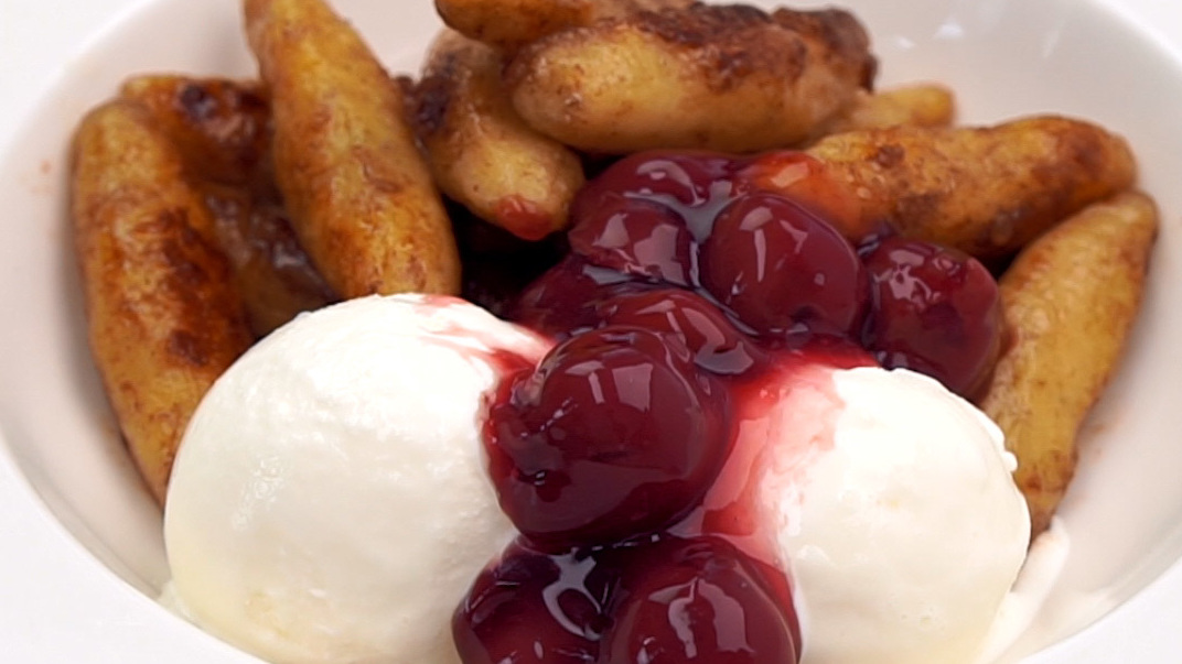 gebratene Schupfnudeln mit Zucchini-Soße und Pilzen